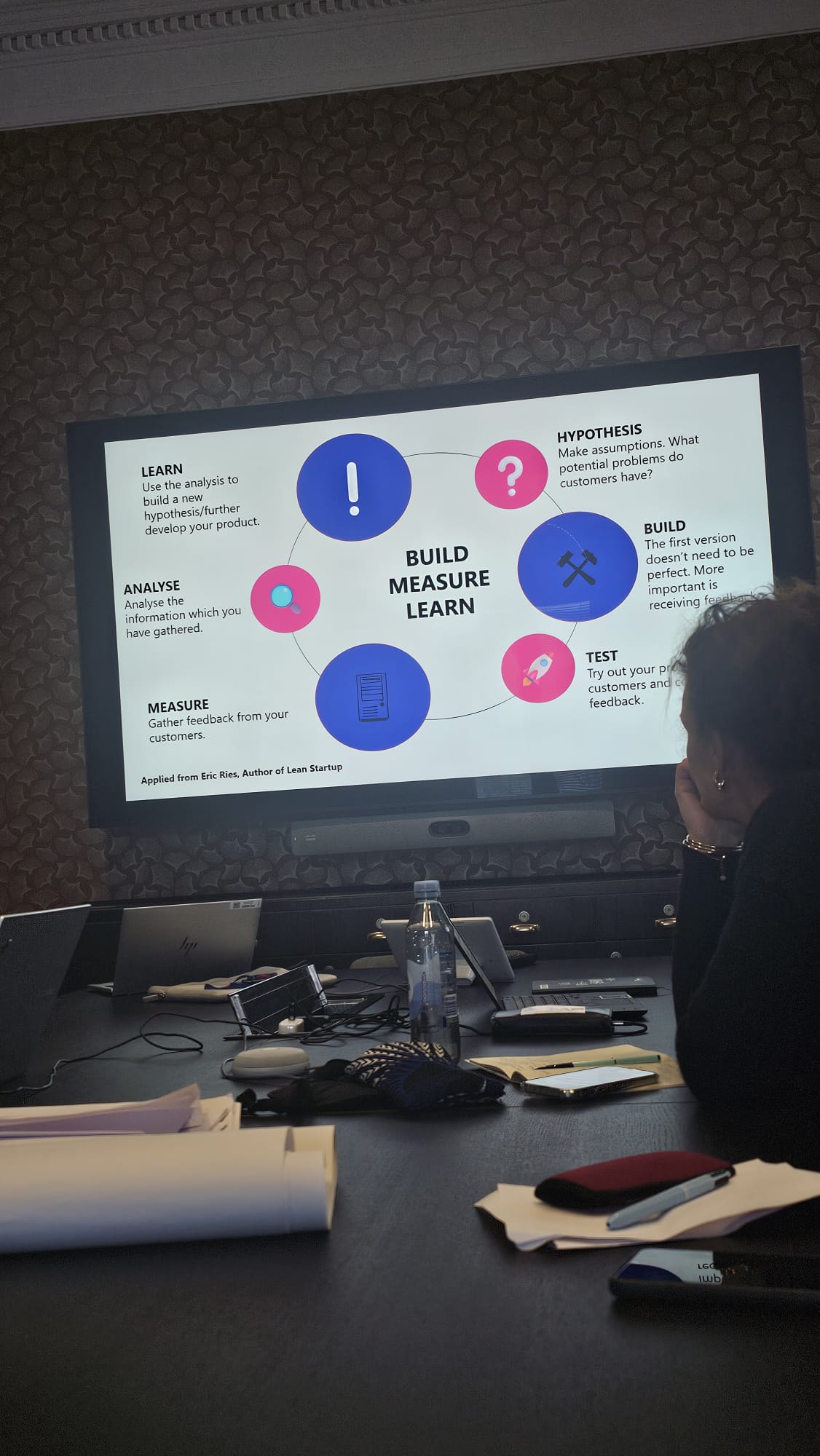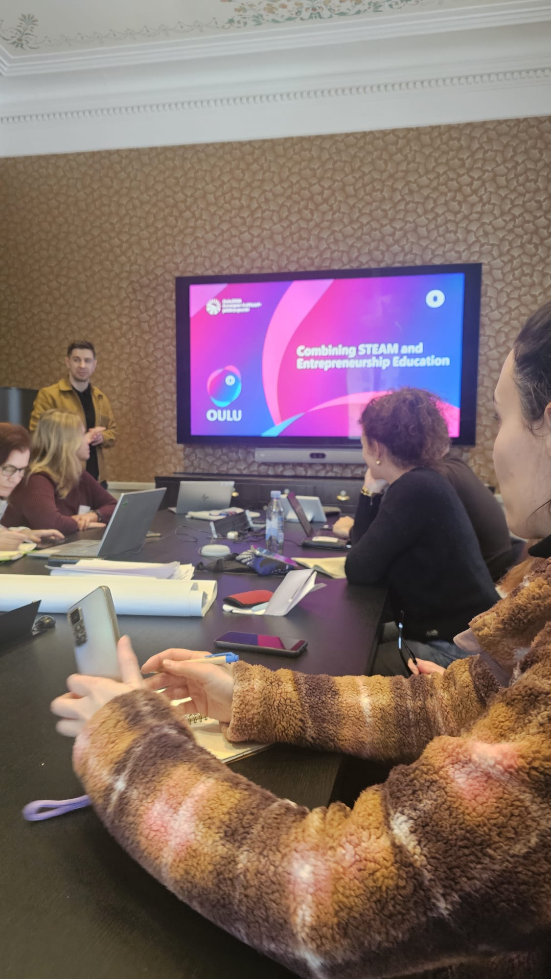 After lunch, we split into two groups for the afternoon sessions. One group participated in a practical entrepreneurship session linked to the STEAM methodology. For this task, we formed new working groups, but our mission this time was to design a potential project for students. We had to keep the previously studied phases in mind and propose a challenge that involved collaboration with local companies or institutions.