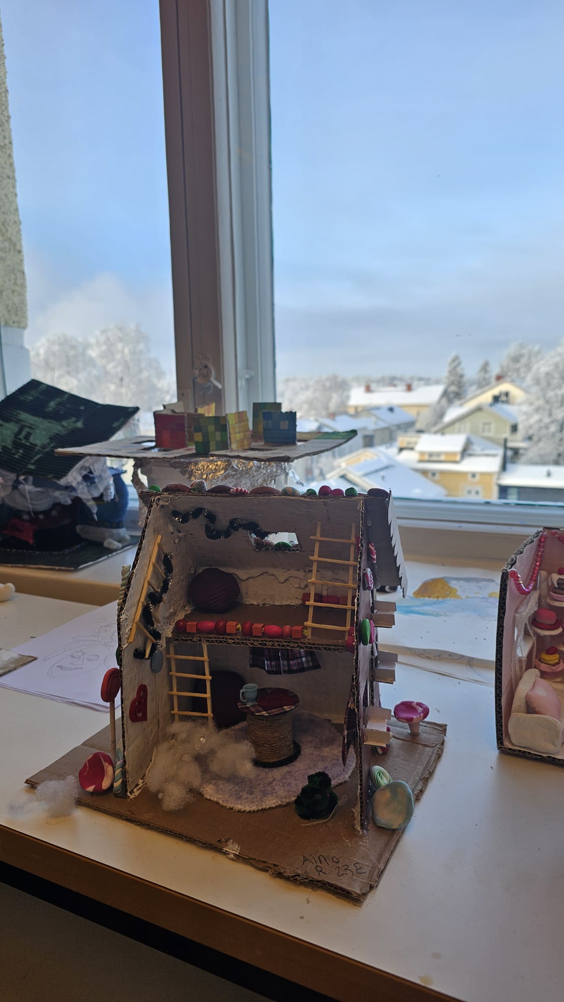 Un grup d’alumnes ha compartit amb nosaltres el projecte “Christmas Window Decoration”, un projecte STEAM en què l’objectiu era fer les decoracions de les finestres del centre d’acord amb la tradició d’Oulu. A partir d’aquí, van seguir totes les fases del procés STEAM i, en el moment de la construcció dels diferents elements, van comptar amb el suport de la universitat i del FabLab (centre que disposa de màquines diverses com ara impressora 3D, talladora làser, etc.).