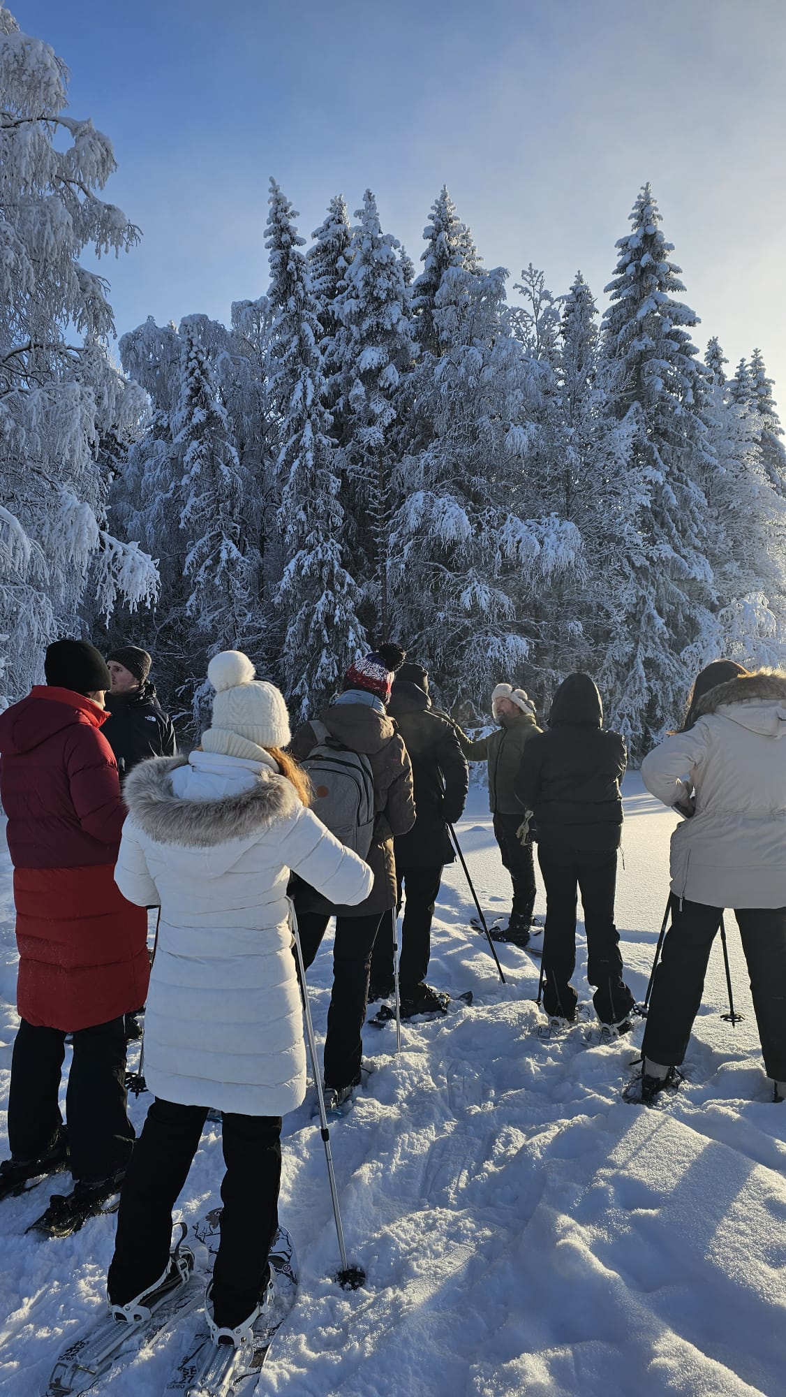 In the afternoon, we enjoyed several activities in Koiteli, where we tried out different ways of getting around in such a wintry environment: snowshoes, the traditional kicksled (potkuri), and the low sled (pulkka). We also had the chance to see one of the most famous local animals in person: the reindeer.