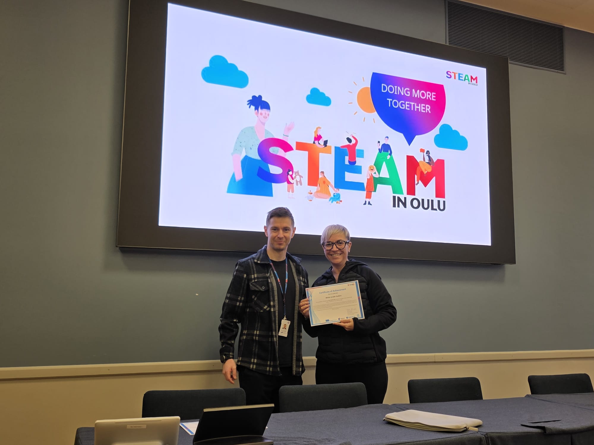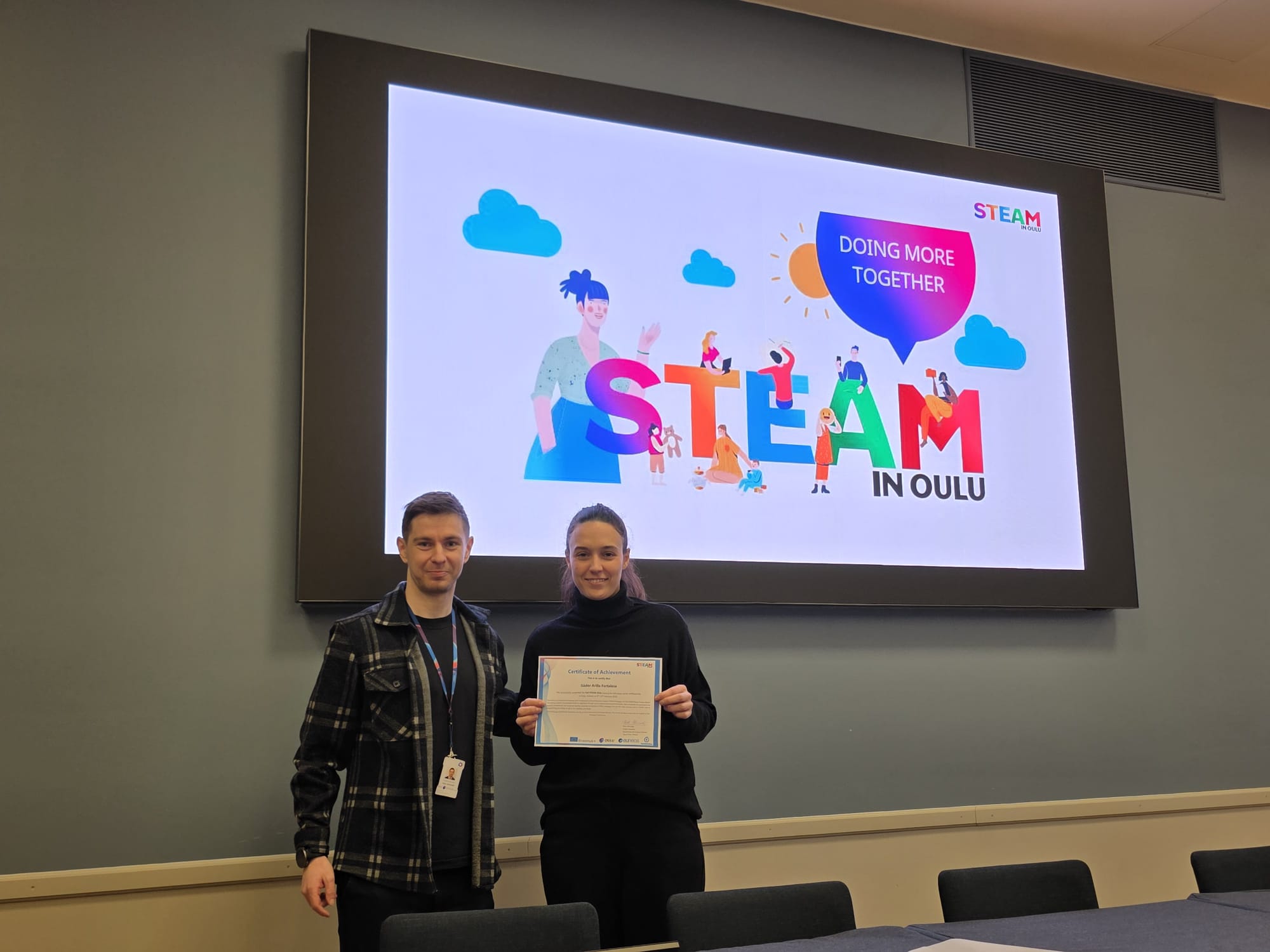 A group of students shared their “Christmas Window Decoration” project with us. This was a STEAM initiative where the goal was to create window decorations for the school in keeping with Oulu’s traditions. The students followed every phase of the STEAM process and, during the construction phase, they received support from the university and the FabLab (a facility equipped with various machinery such as 3D printers, laser cutters, etc.).