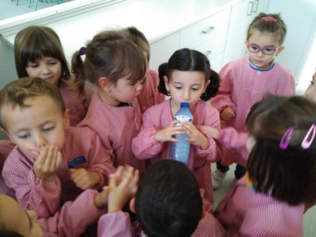 - Podem beure l’aigua de dintre de la botella? Comprovem-ho! Oh! No! S’ha fet gel! – diu l’alumnat-.