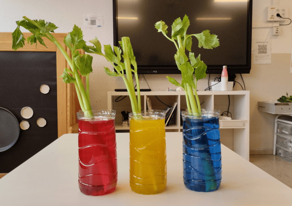 Aquestes setmanes, a 4t, ens hem convertit en petits científics i científiques per descobrir com es desplaça l’aigua a través de les plantes.Hem realitzat un experiment sobre la capil·laritat, un fenomen que permet que l’aigua pugi per l’interior de les tiges fins a arribar a les fulles. COM HO HEM FET? Primer, hem omplert diversos