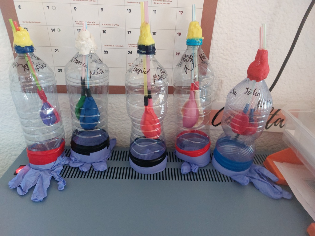 Durant aquest trimestre els alumnes de 3r han pogut practicar els continguts treballats al tema de medi sobre la salut fent un parell d’experiments, un del sistema respiratori i un altre del digestiu. Us deixem algunes imatges: