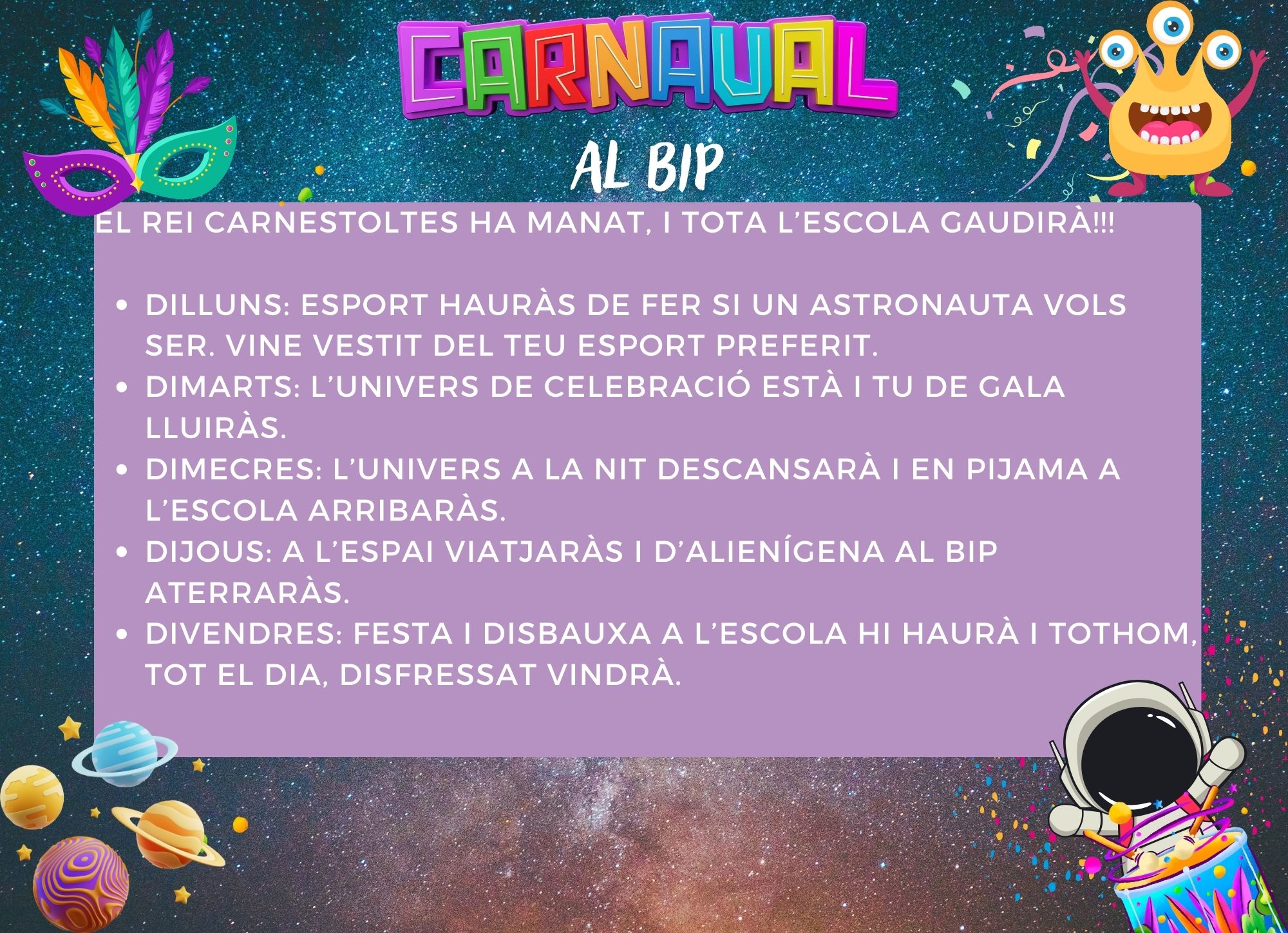 I recordeu, divendres 9 de febrer farem la Rua de l’escola!