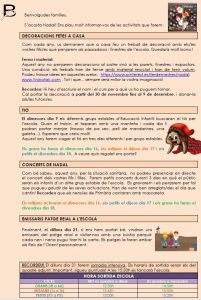 Adjuntem comunicat informatiu amb les activitats que farem a l’escola. Poseu especial atenció a les activitats que afecten als vostres fills/es segons el Cicle al que estiguin assignats/des.