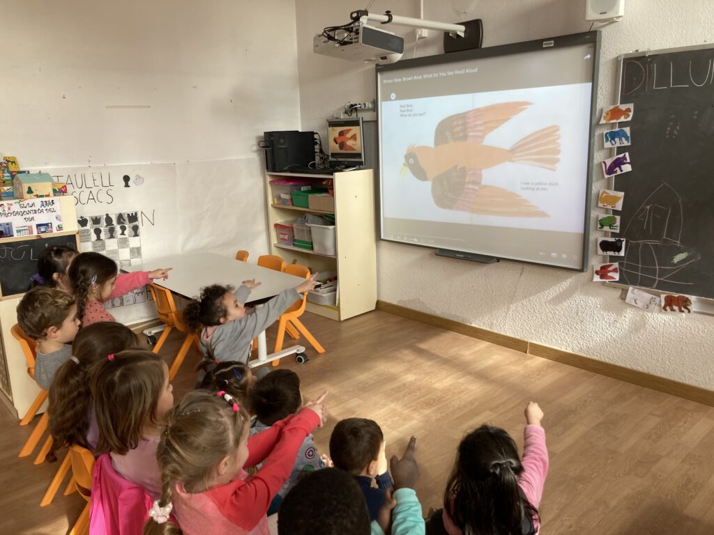 Finalment, també hem gaudit de sessions de storytelling amb llibres il·lustrats com Brown Brown Bear a P4 o Stuck a P5.