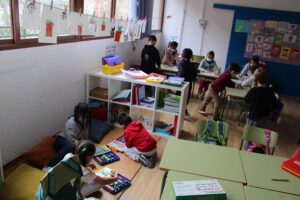 Com podreu veure a les fotos hem instal·lat els nous parquets i organitzat les aules per aportar calidesa i confortabilitat a l’espai i millorar la pràctica educativa.