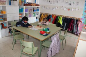 Aprofitant aquest canvi estem redissenyant les aules buscant afavorir els espais oberts sense obstacles que limitin el moviment i utilitzant mobiliari que estigui a l’alçada dels infants permetent que tots els materials que s’utilitzen en el nostre dia a dia estiguin al seu abast. Agafen allò que necessiten quan la dinàmica d’aula ho requereix i els hi atorguem una gran capacitat de decisió, responsabilitat i autoregulació per tal de deixar-ho tot com ho han trobat.