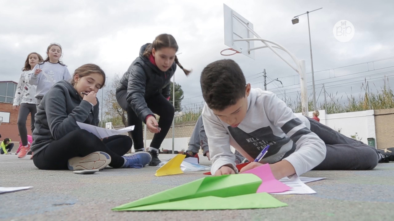 A l’escola hi escoltem música i hi fem música; gaudim d’artistes i som artistes. Cantem, ens belluguem, correm, juguem, pintem. Aprenem a no ser competitius, a compartir. Juguem amb avions de paper al pati per calcular distàncies, busquem paraules que comencin amb T per tots els racons i les guardem. Hi escoltem contes i fem funcionar robots. A l’escola ens socialitzem, convivim els uns amb els altres, aprenem a dialogar i a fer equip: l’alumnat, les famílies i totes les persones que hi treballem.