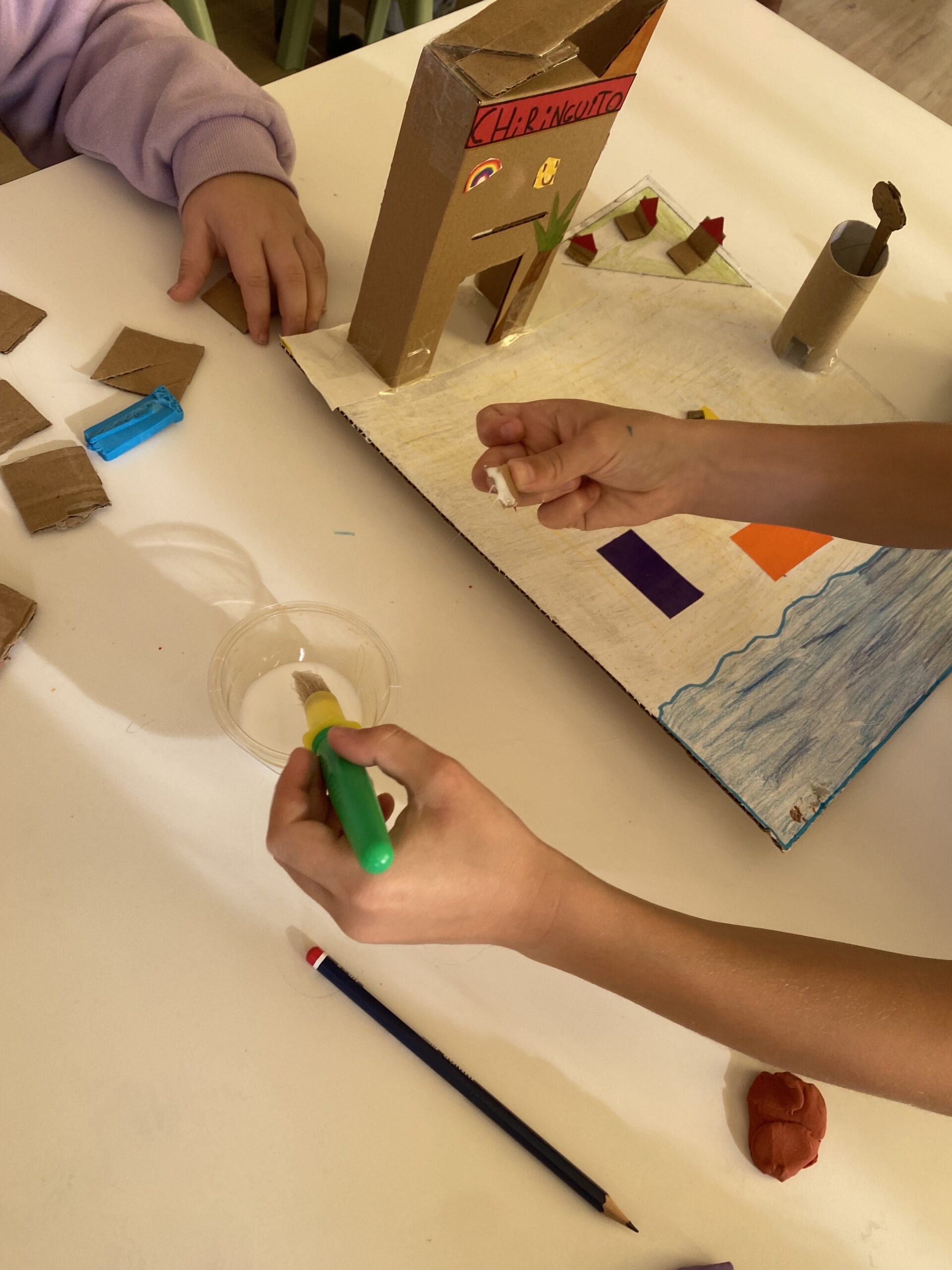 Per acabar el tema de manera creativa, els infants han treballat en grups cooperatius per dissenyar i construir una maqueta que representés un dels paisatges estudiats. Abans de començar la feina pràctica, els infants han fet una planificació detallada i un esbós del qual volien crear, pensant en els elements que inclourien i com distribuir-los a la maqueta.