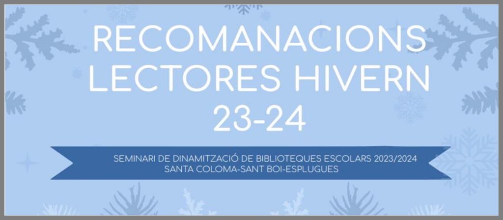 El Seminari de Dinamització de Biblioteques escolars de Sant Boi i Santa Coloma de Cervelló hem preparat una selecció especial de recomanacions lectores d’hivern, pensada per a tot l’alumnat: des dels més petits fins als adolescents. Es tracta d’un recull de lectures variades i engrescadores, amb contes, àlbums il·lustrats, novel·les i llibres plens d’aventures, emocions […]