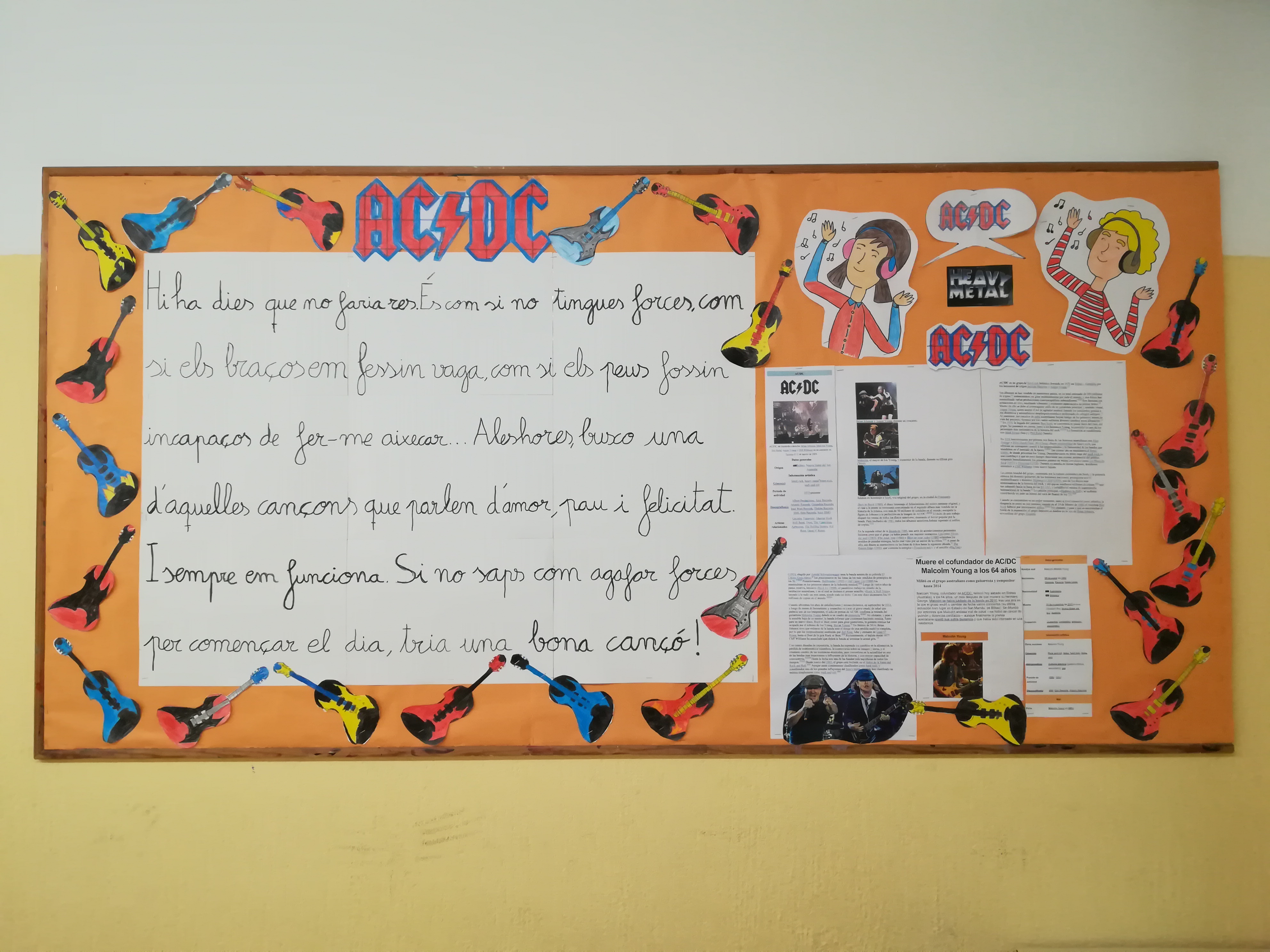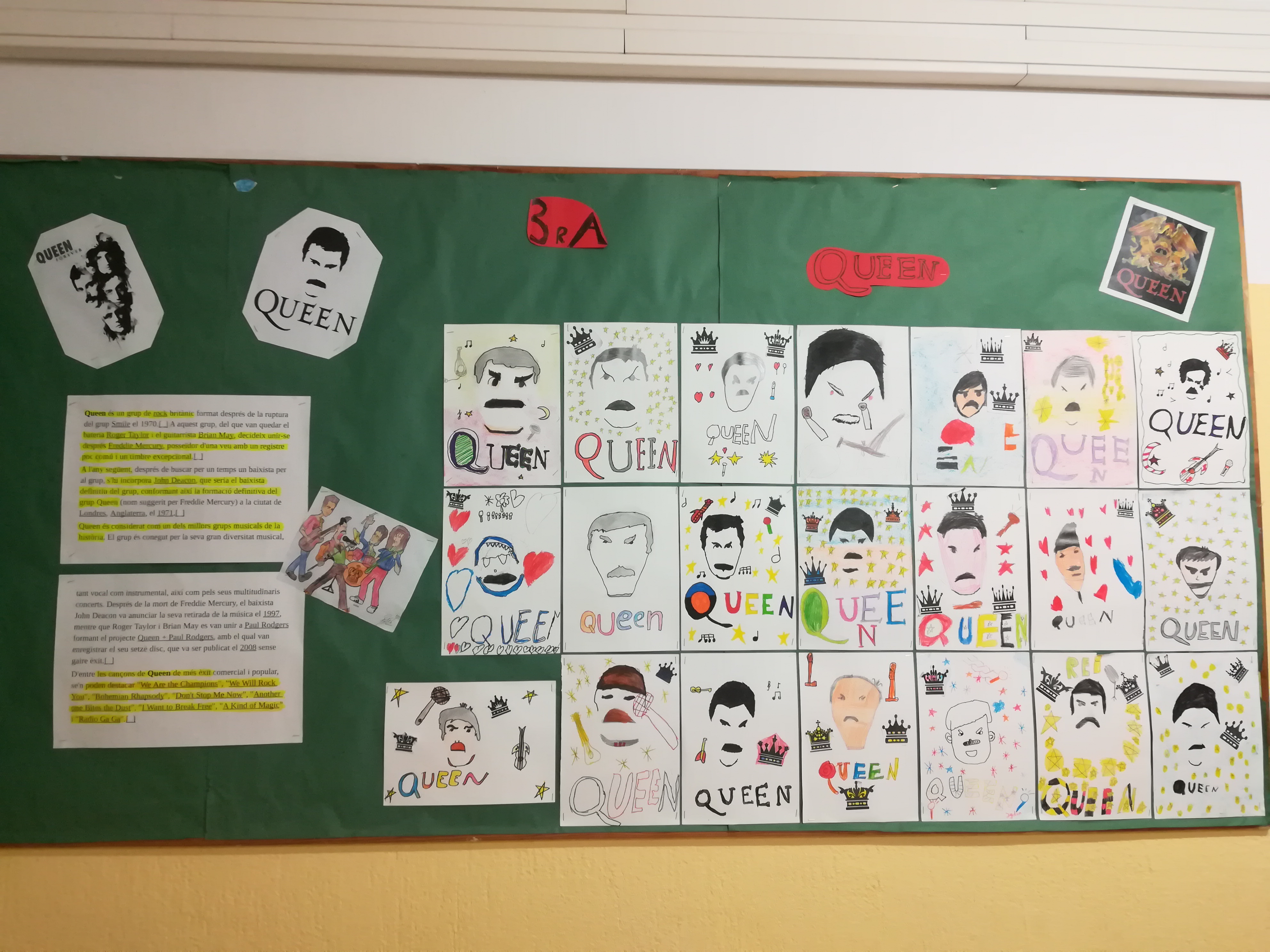 El dimarts passat vam celebrar el dia de Santa Cecília  a la nostra escola. Aquest curs hem aprofitat per guarnir l’escola amb la temàtica del tema transversal “La música del s.XX”. Totes les classes han investigat i parlat dels seus cantants o grups, fa goig passejar per l’escola!