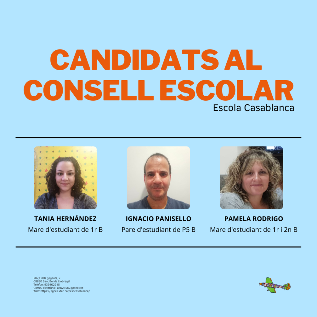 El dia 24 de novembre de 8:30h a 17:00h serà el moment que les famílies puguin venir a l’escola i votar pel candidat que voleu que us representi.