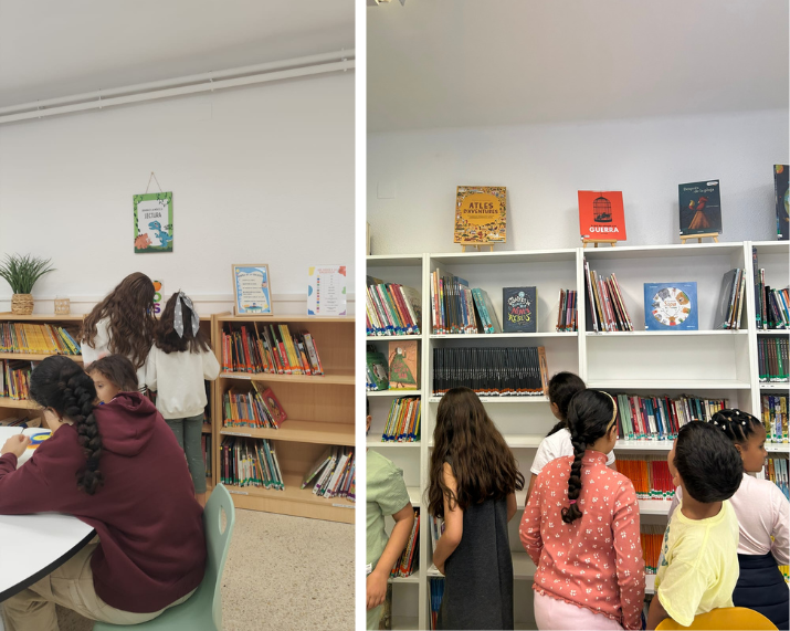 Els infants van poder passejar i descobrir les dues biblioteques, la de Comunitat de Petits i alumnat de 1r i 2n, i la de grans, de 3r a 6è de primària.