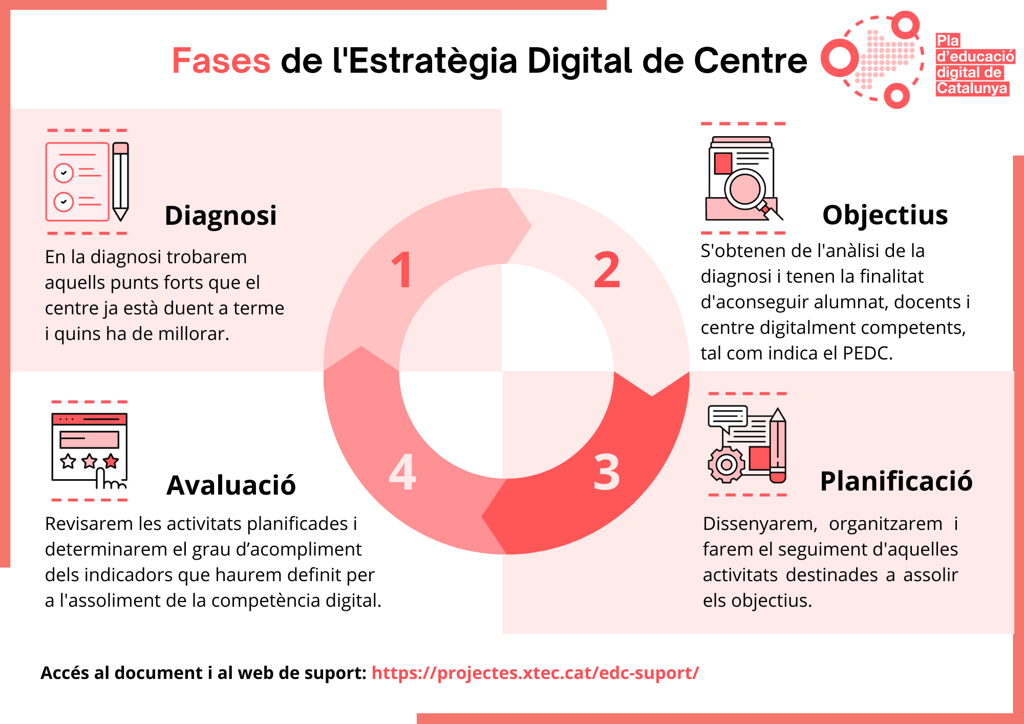 Part estratègica Seguint les indicacions del document de definició de l’Estratègia Digital de Centre, la part estratègica l’hem estructurat en 4 fases: