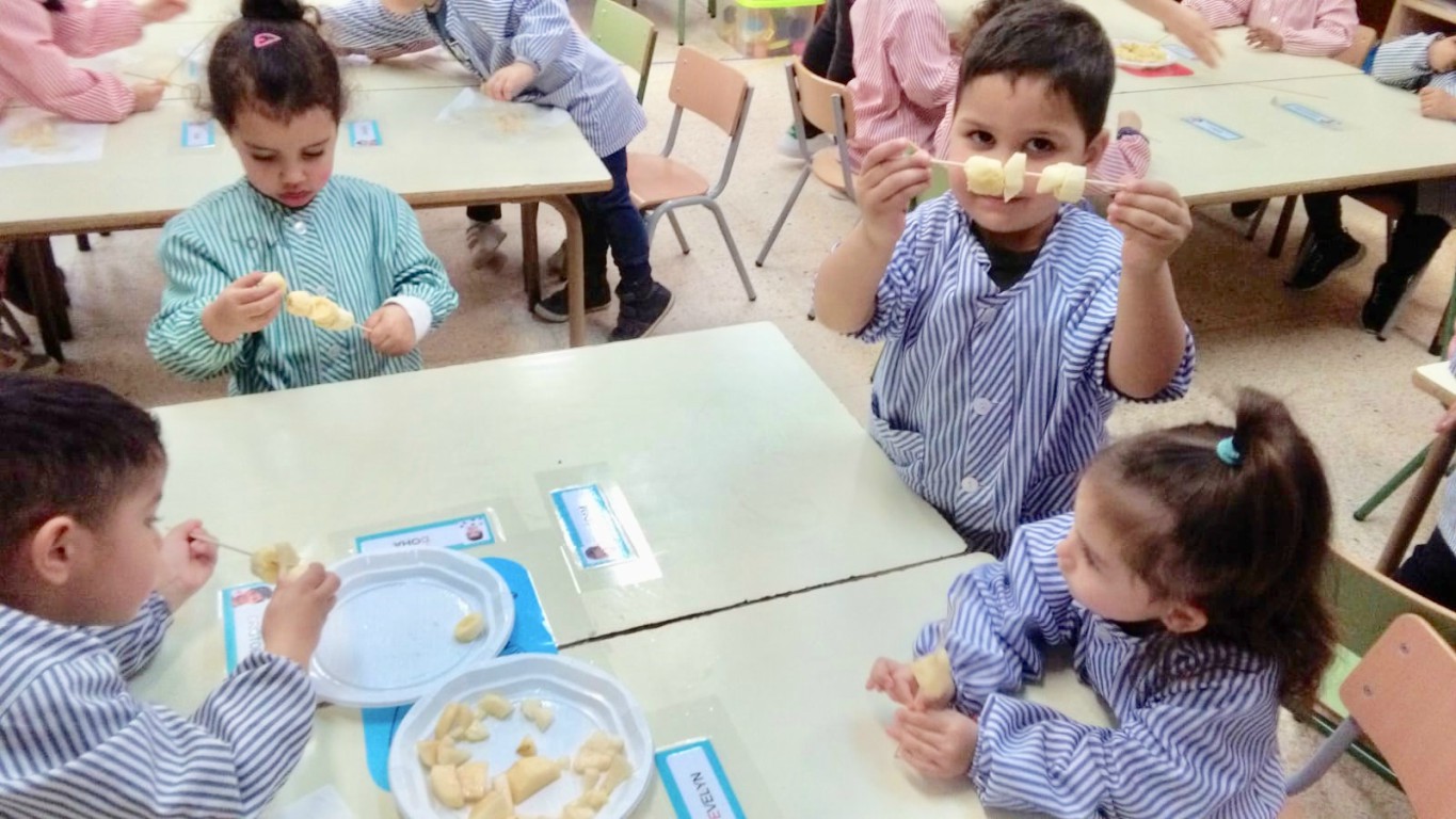 A P3 ens iniciem en l’aprenentatge dels primers conceptes matemàtics i ens agrada fer-ho de manera lúdica i divertida. Sabem que, perquè pugui haver-hi aprenentatge cal que hi hagi una manipulació prèvia i experimentació amb els materials, doncs aprenem a través dels sentits. I així ho hem fet! Unes broquetes de fruita delicioses preparades pels nens i nenes de P3A i P3B.