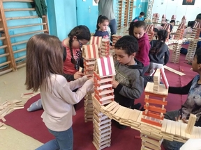 Els alumnes de 4t van fer un taller treballant cooperativament. Van desenvolupar una activitat de construcció amb fustetes de pi. La concentració, la comunicació i la paciència han estat essencials per fer una bona feina en equip. Van fer unes creacions originals i exigents amb l’acompanyament d’uns animadors-pedagogs formats en la pedagogia Kapla a França.