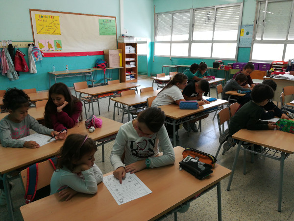 Ens repartim en tres grups i anem a diferents llocs de l’escola.