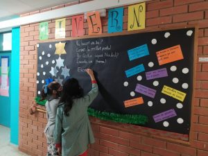 A l’assignatura de plàstica hem decidit entre tots  com podríem decorar el mural que tenim al passadís i quins materials utilitzar per poder representar aquesta estació.