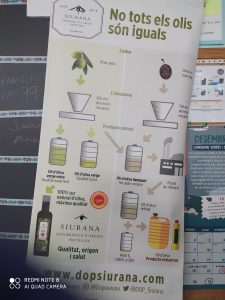 Ens vam convertir en uns veritables experts amb oli d’oliva verge extra. Vam aprendre els orígens de l’oli des de la terra fins que arriba a les tendes on el podem comprar, vam descobrir diferents olis que podem trobar al mercat i per acabar vam ser obsequiats amb un potet d’oli d’oliva verge extra que vam dur cap a casa.