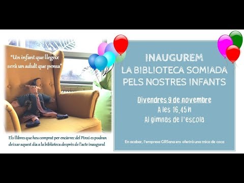 Aquí teniu un vídeo de fotos editat per l’àvia del Martí i la Valentina de tot el procés des de que vam somiar la biblioteca fins el dia de la inauguració. I tot seguit, un vídeo de l’acte d’inauguració que ens ha editat la mare de la Bruna i el Lluc. Moltes gràcies! cliqueu