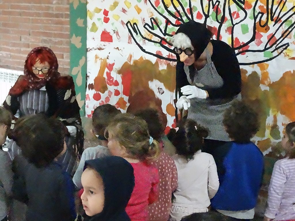 Per la Castanyada, la Maria Castanyera visita l’Escola i ens porta els ingredients dels panellets. Els més menuts de l’Escola