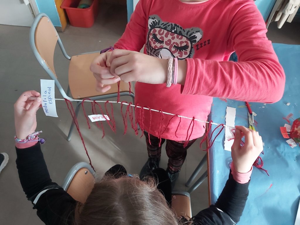 Després, vam fer dos etiquetes: una on hi deia medul·la espinal i una altra on hi deia nervis.