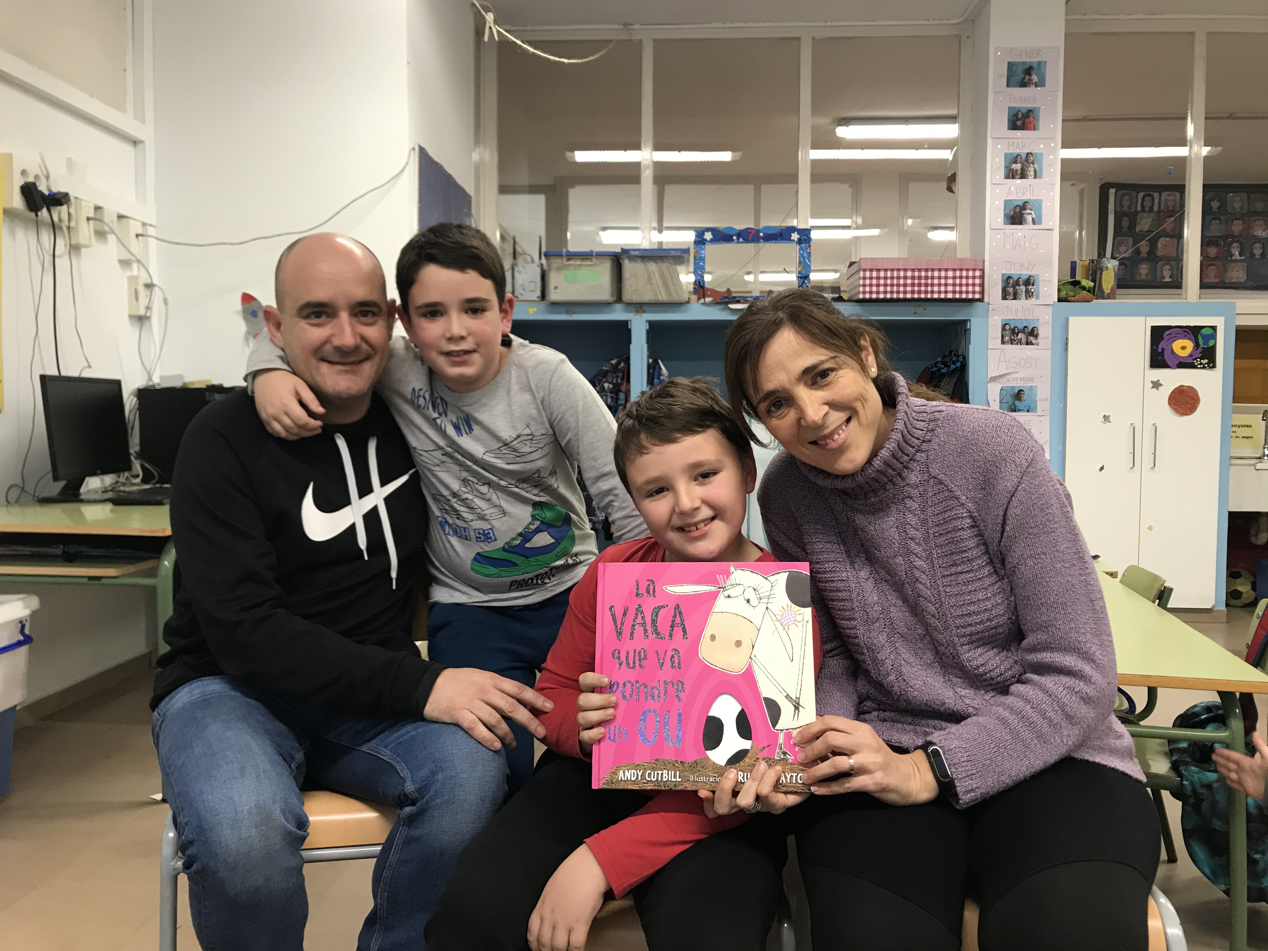 La família Casanova Calvo ens han llegit un conte anomenat La Vaca que va pondre un ou. Ha sigut molt divertit escoltar com la protagonista, una vaca que era una mica diferent de les altres, es va fer famosa per pondre un ou.