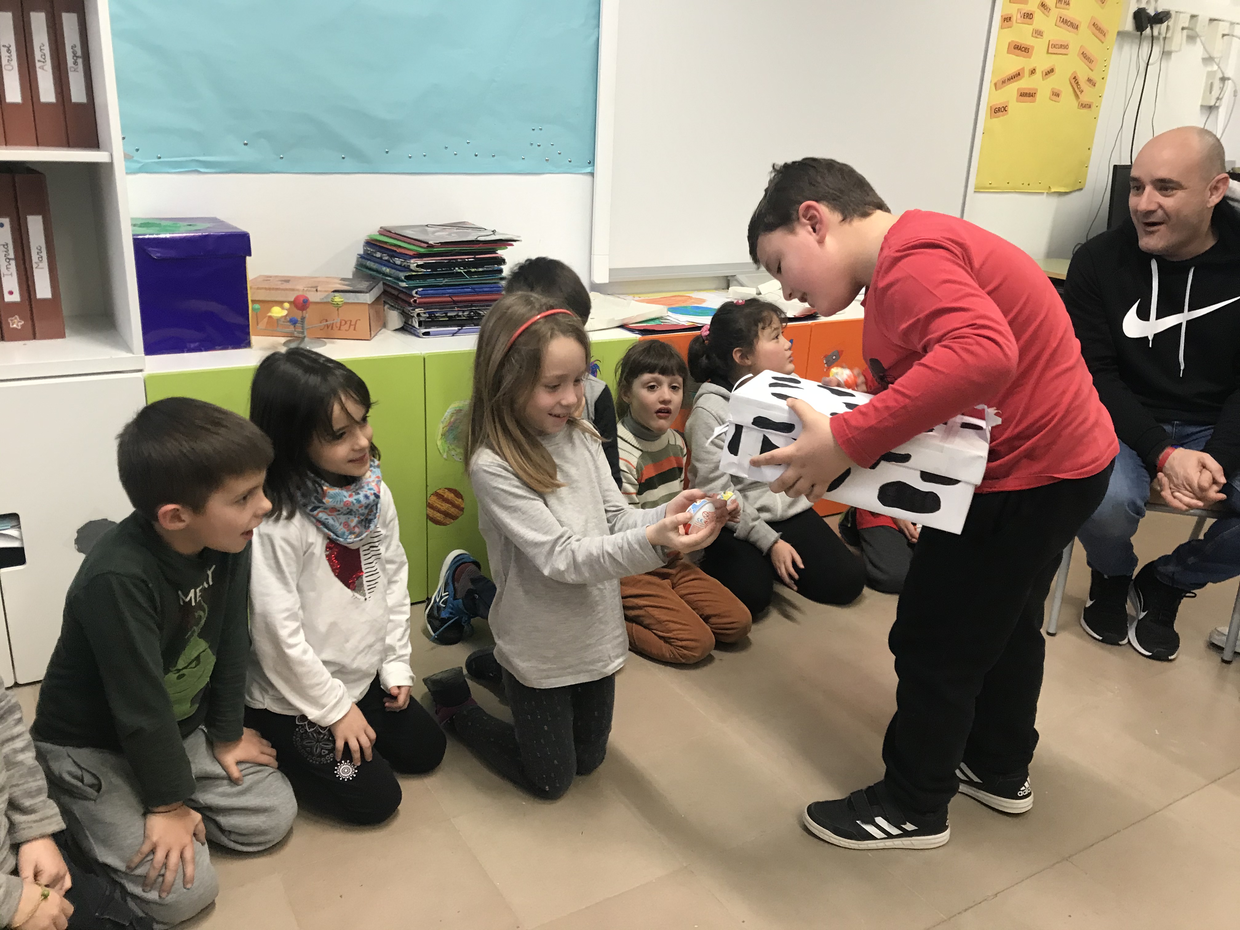 La GRAN SORPRESA va ser la vaca que havia construït l’Albert. Una vaca que també donava ous però aquests de xocolata!!! Va ser un gran final per un conte molt especial.