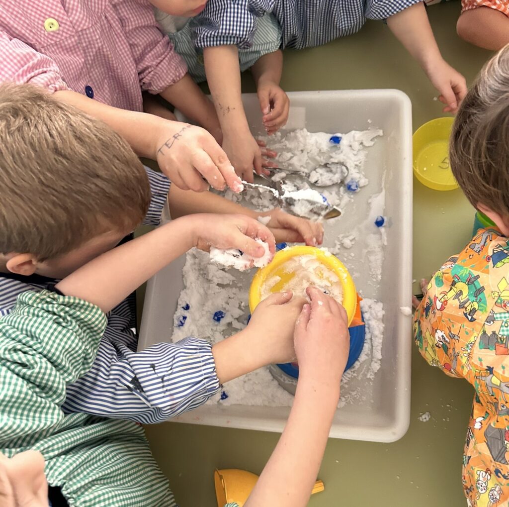 Els alumnes d’educació infantil en aquesta ocasió estan desplegant i esprement tant com poden la seva capacitat artística, el potencial de la manipulació i experimentació, els sabers que desperta i expandeix el joc simbòlic i les construccions i cuidant el vessant més emocional amb un espai de llums i ombres en el que troben un ambient de calma, equilibri i inspiració.