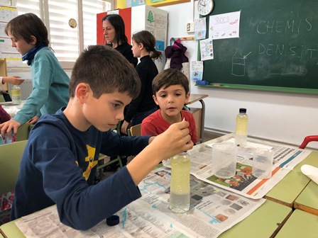 El taller consistia en comprovar les densitats de diferents substàncies, en concret, l’aigua i l’oli. També vam aprendre alguns conceptes químics. Sabeu què són els elements hidrofílics i els hidrofòbics? Són aquells que es barregen o no amb l’aigua.