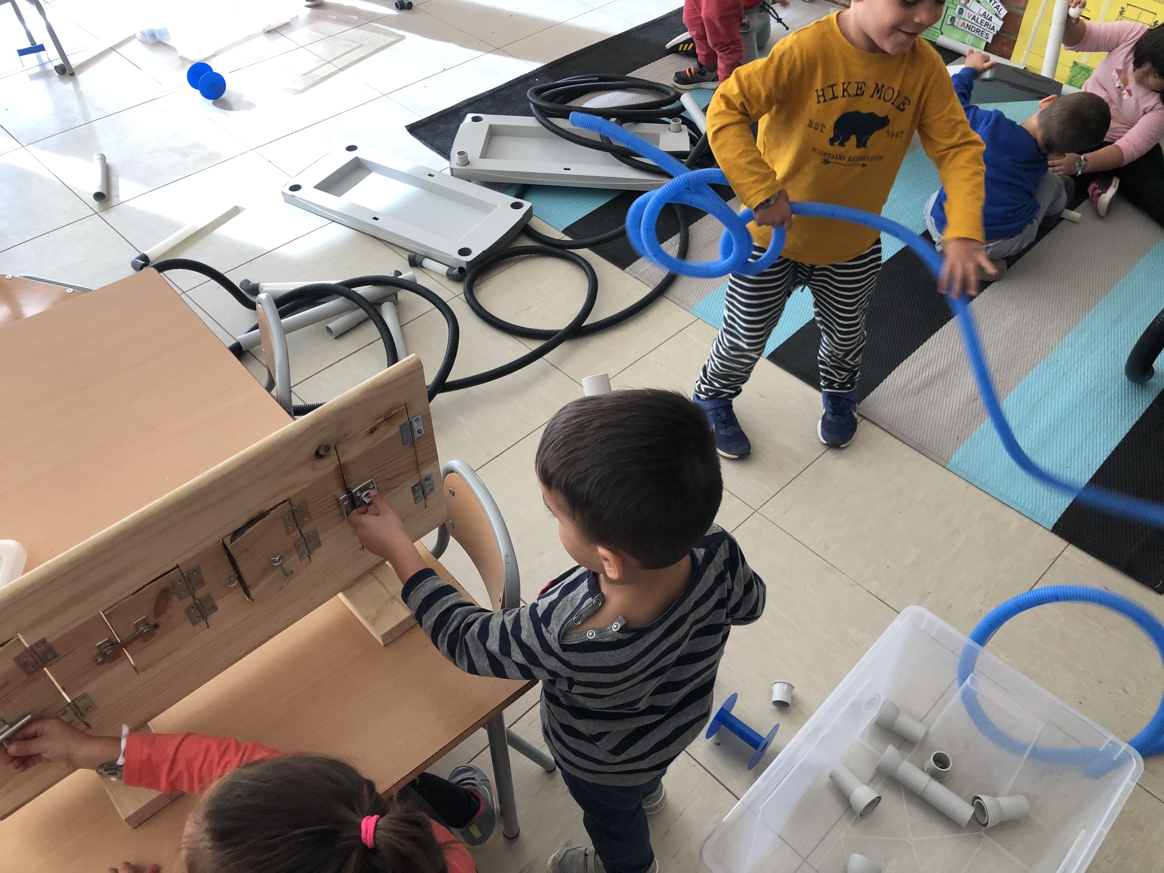 En aquest ambient es pretén que els infants observin, toquin, pensin, dedueixin, facin hipòtesis, treguin conclusions, comparteixin, es relacionin… Per això es posa al seu abast material amb el qual puguin tenir contacte amb la ciència: balances, metres, lupes, imants…