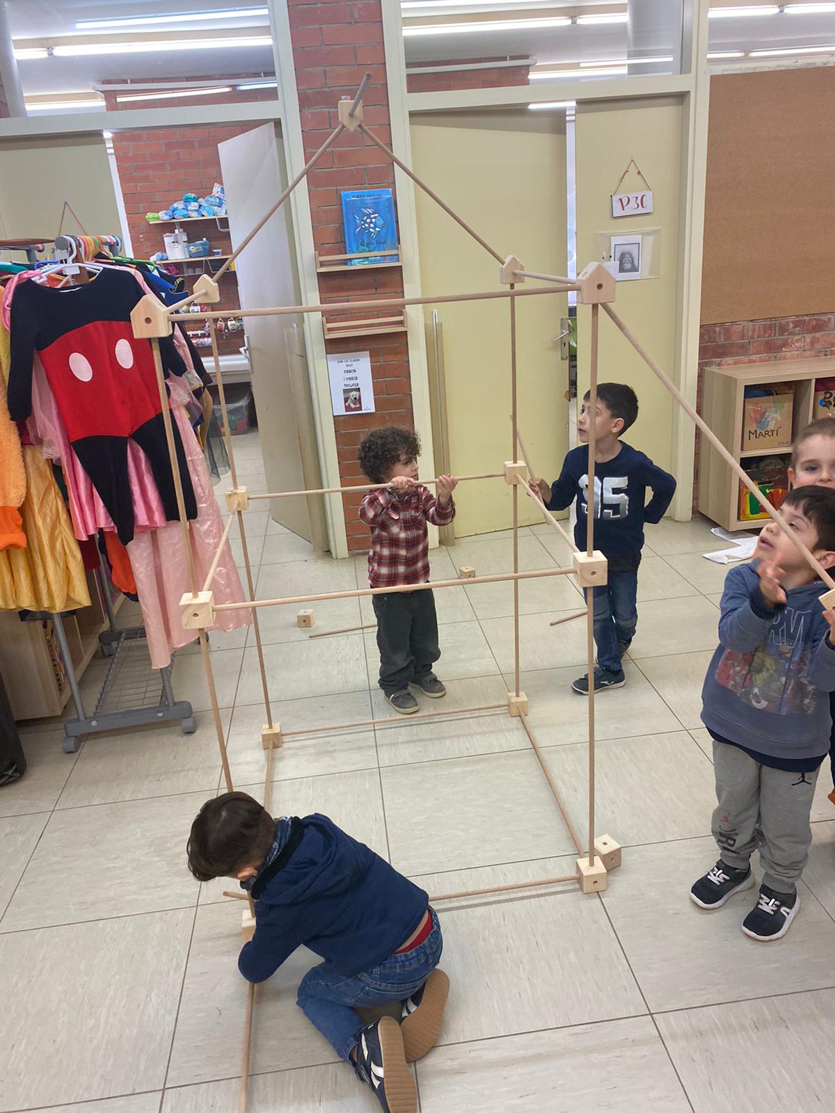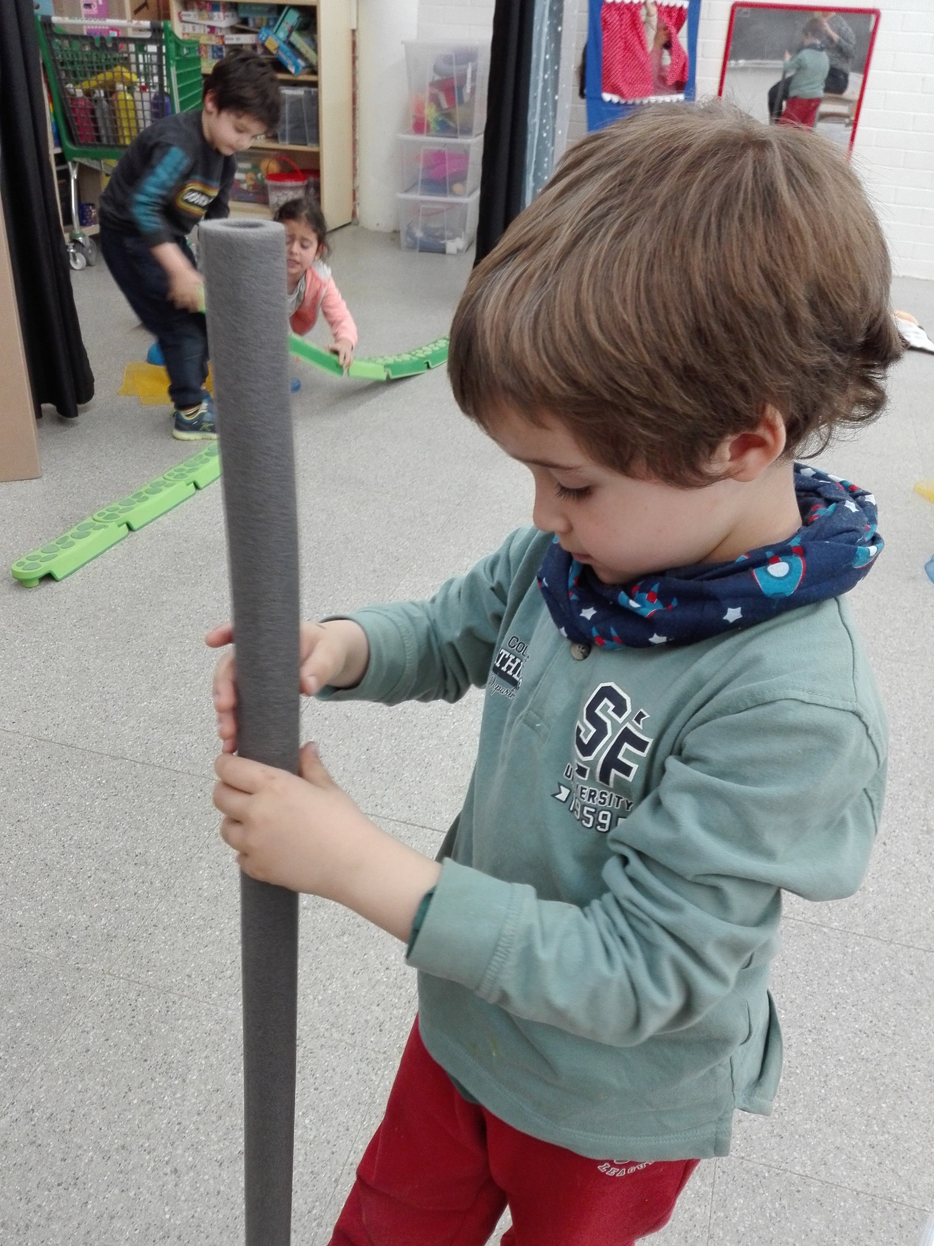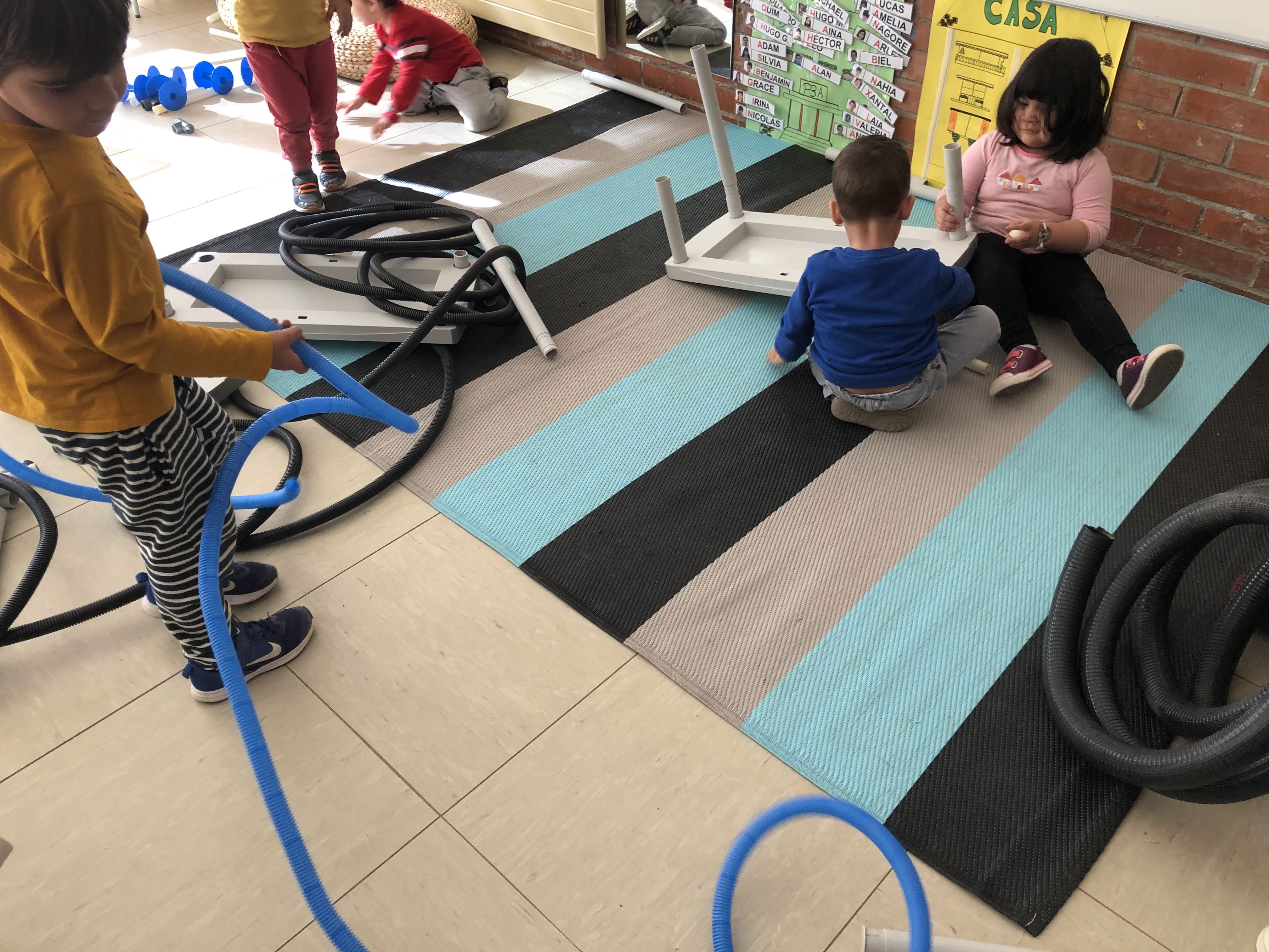 En aquest ambient els infants tenen a l’abast diferents tipus de materials, estructurats i no estructurats, de diferents mides i formes (peces de fusta, tubs de cartró…) per poder experimentar, jugar i manipular sense la directivitat de l’adult.