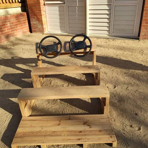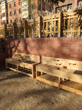 També s’han instal·lat 2 sorrals, s’han comprat 3 cabanes i 8 taules de picnic, una estructura de jocs motrius, un circuït d’equilibris i s’han pintat jocs al terra del pati.