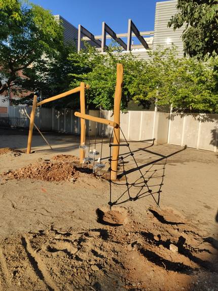 Les famílies han realitzat diferents jornades per crear jocs al pati de fusta i s’ha instal·lat un rocòdrom.