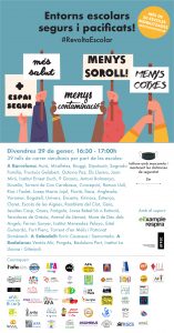 El passat divendres 29 de gener l’escola Ferran Sunyer va fer el primer tall del carrer Viladomat per reclamar menys contaminació, menys soroll i un entorn més pacífic.