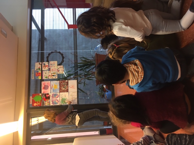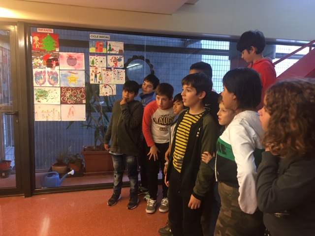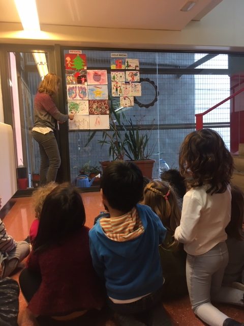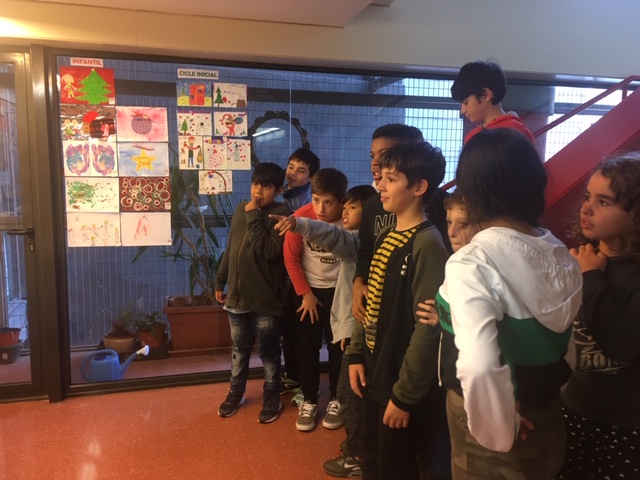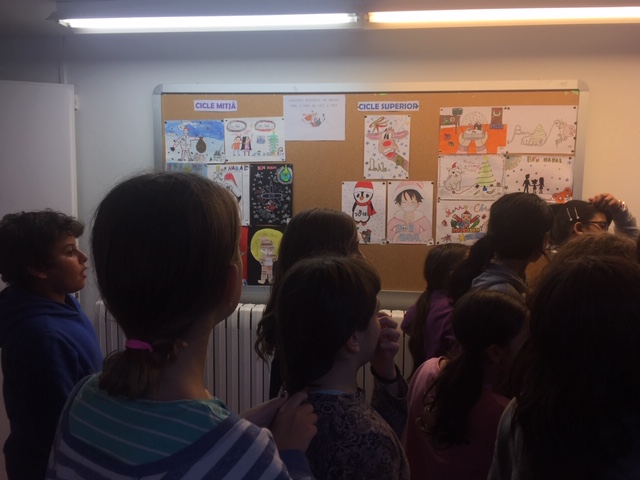 Enguany hem realitzat aquesta activitat com un taller més dels tallers de plàstica que normalment fem a tota l’escola i, com sempre, hem seguit el mateix procés democràtic per escollir les quatre postals (una per cicle) que s’imprimiran i que serviran per felicitar el Nadal a la gent del barri (o de fora, si voleu!). Tota la canalla de l’escola ha fet la seva postal (excepte els més petits que han fet una per classe), després, entre els alumnes de la classe, han escollit les dues que més els han agradat i, per tant, els representen i així, un cop feta aquesta primera sel·lecció, s’han penjat a l’escala per on han passat totes les classes de l’escola per escollir entre tots la que més ha agradat de cada cicle.