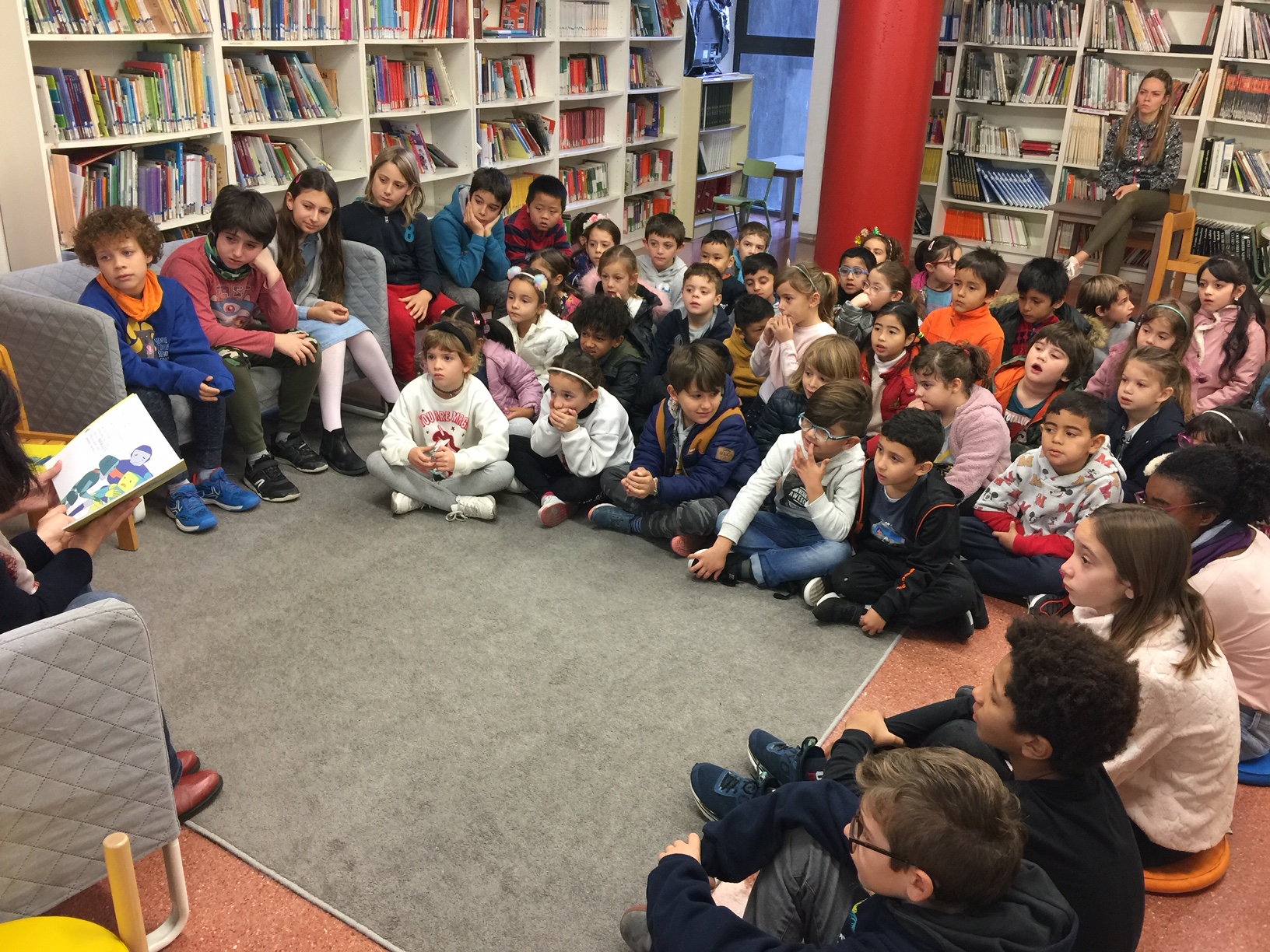Ahir a l’escola vam tenir una visita molt especial: van venir l’Ona i la Cristina Arnau (exalumna i exmare de l’escola) -juntament amb un equip de l’InfoK de TV3- per presentar a la canalla de la nostra  escola “En Joan, un robot molt especial”; una eina pedagògica en format conte per explicar la complexitat d’una malaltia minoritària, l’arribada al seu diagnòstic i el seu conseqüent tractament.