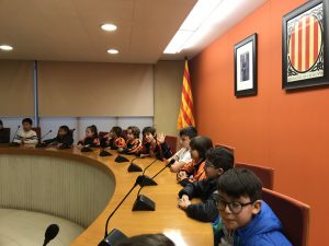 Un cop a dins l’edifici, vam visitar algunes sales importants, on l’equip de regidors hi fan reunions, també el despatx de l’alcalde i el balcó que dóna a la Porxada.