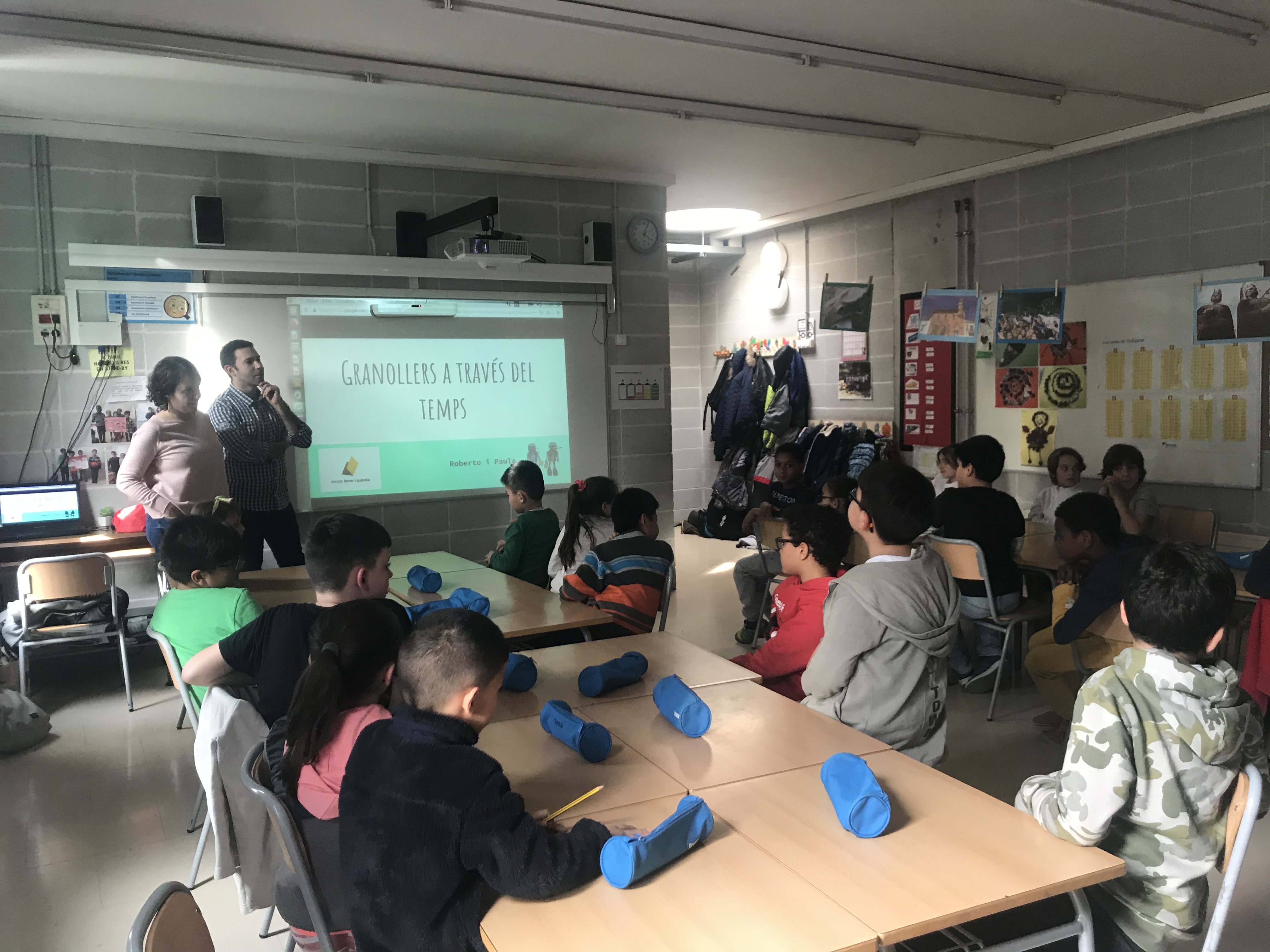El divendres 7 de febrer vam tenir la gran sort de comptar amb la presència a l’escola de Roberto González i la Paula, els tiets de l’Efrén de tercer. Arqueòlegs de professió i de cor, ens van encomanar la seva passió estudiant el passat de Granollers. Ens van fer una xerrada molt interessant sobre els orígens de la ciutat i vam fer un viatge en el temps adonant-nos de com ha crescut i canviat Granollers al llarg dels segles.