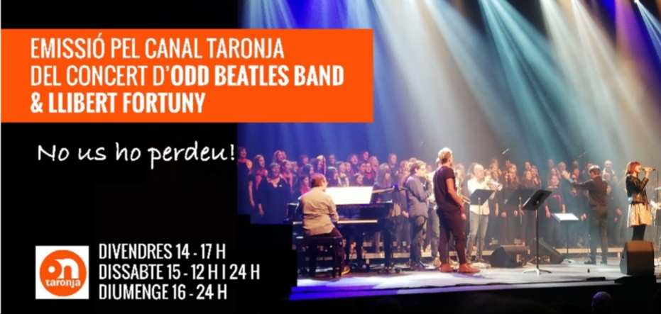 La proposta que us fem, però, és televisada. És un concert que van oferir el dia 2 de desembre al Kursaal la ODD Beatles band & Llibert Fortuny de música dels Beatles i que serà retransmès pel Canal Taronja en diverses franges horàries: el dia 14 a les 5 de la tarda, el dia 15 a les 12 del migdia i a les 12 de la nit i el dia 16 a les 12 de la nit. Tots els arranjaments són del David Martell i ell és l’intèrpret que toca el piano. Si voleu saber quins altres músics i grups de veus el van acompanyar, cliqueu AQUÍ , on hi ha tota la informació complementària del concert. No us el perdeu!