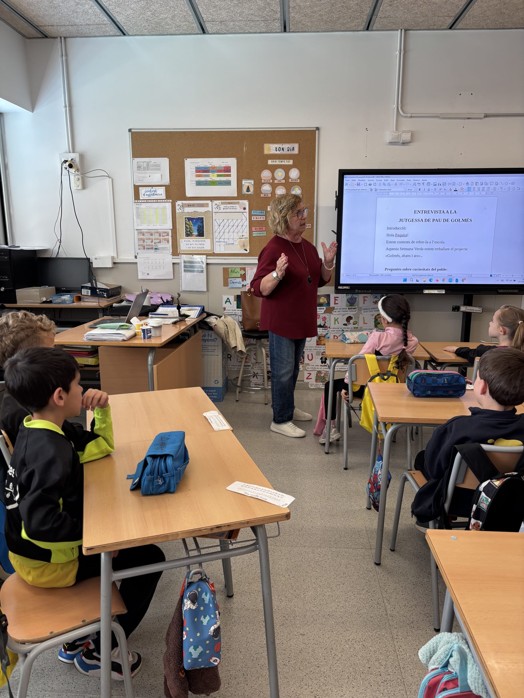 El dimarts al matí, l’alumnat de CI hem tingut l’oportunitat de conversar amb la Paquita, la Jutgessa de Pau de Golmés. A través d’una entrevista preparada entre tot l’alumnat, els nens i nenes de primer i segon li han pogut fer preguntes sobre dubtes i idees inicials dels oficis antics i les cases del poble. Gràcies a ella hem pogut descobrir dades i curiositats rellevants de Golmés i del seus habitants. Us animem a escoltar el pòdcast i així conèixer una mica més aquestes peculiaritats tant interessants i a la vegada tradicionals i divertides.