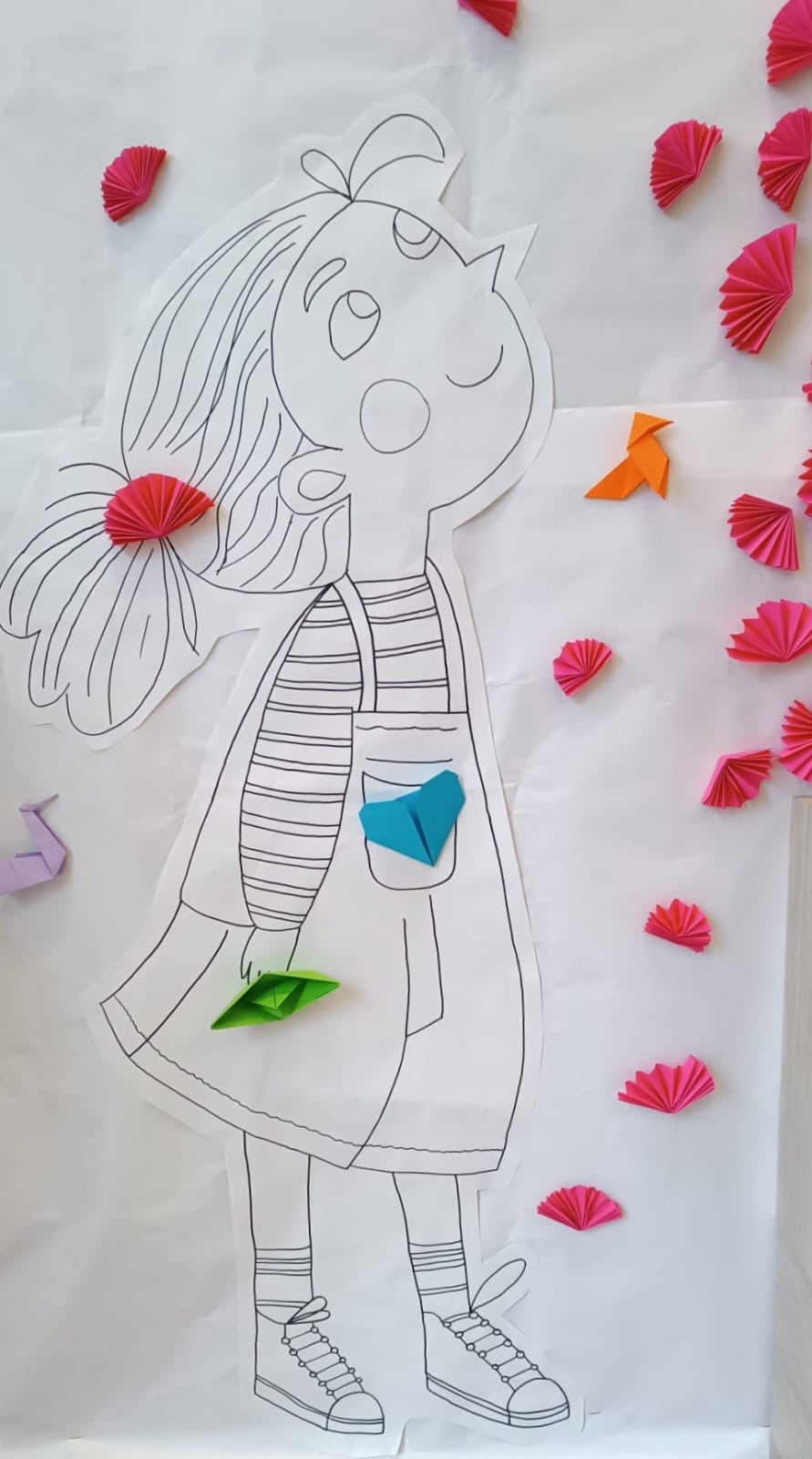 Per donar la benvinguda al segon trimestre, l’entrada de l’escola ha canviat d’aspecte gràcies a un mural molt especial elaborat per la comunitat de mitjans. El mural té com a protagonista la paraula somnis, formada lletra per lletra amb moltes figures de papiroflèxia que omplen cada forma i aporten color i volum a l’espai.
