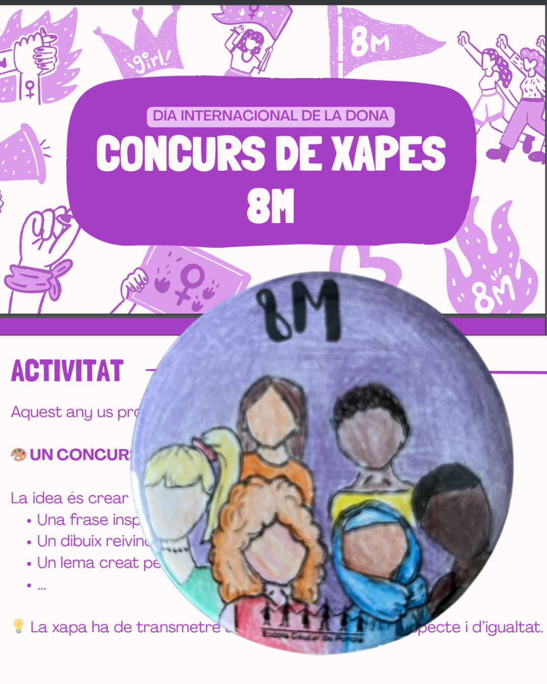 El passat 8 de març, amb motiu de la celebració del Dia Internacional de la Dona, a l’escola es va organitzar un concurs de xapes amb l’objectiu de fomentar la creativitat i la reflexió entre l’alumnat. La proposta, de participació voluntària, consistia a dissenyar una xapa amb un lema o dibuix relacionat amb aquesta temàtica. […]