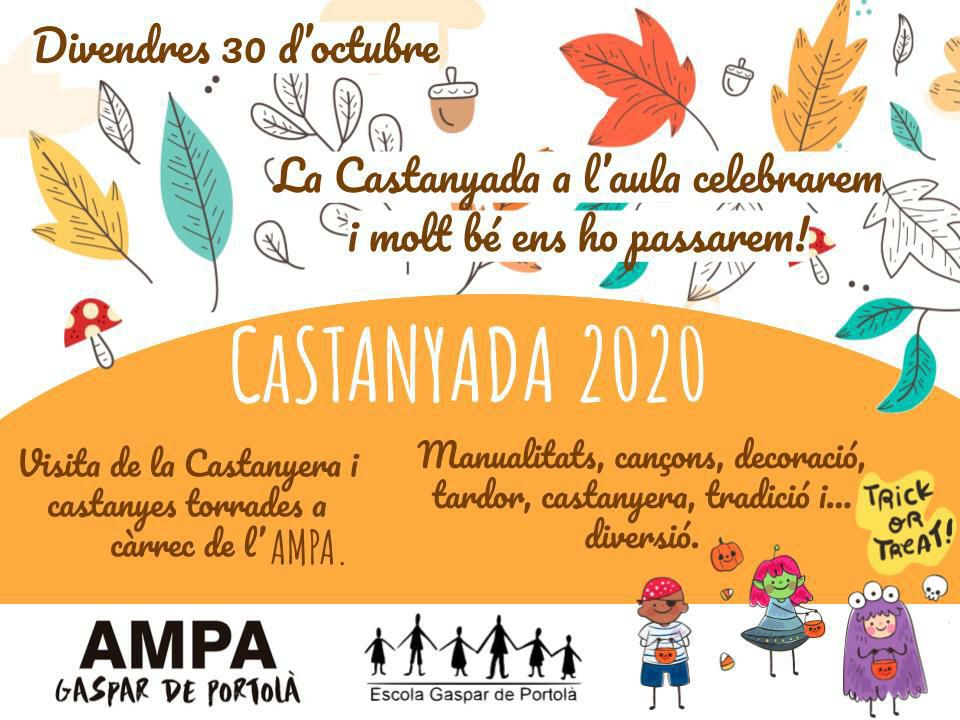 Aquest divendres celebrarem la castanyada, diferent, però la celebrarem! L’AMPA torrarà les castanyes i anirà a buscar la castanyera per a que visiti els nens i nenes d’educació infantil.