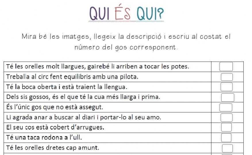 Llegeix amb atenció i posa el número correcte, cada número el podem posar més d’un cop.