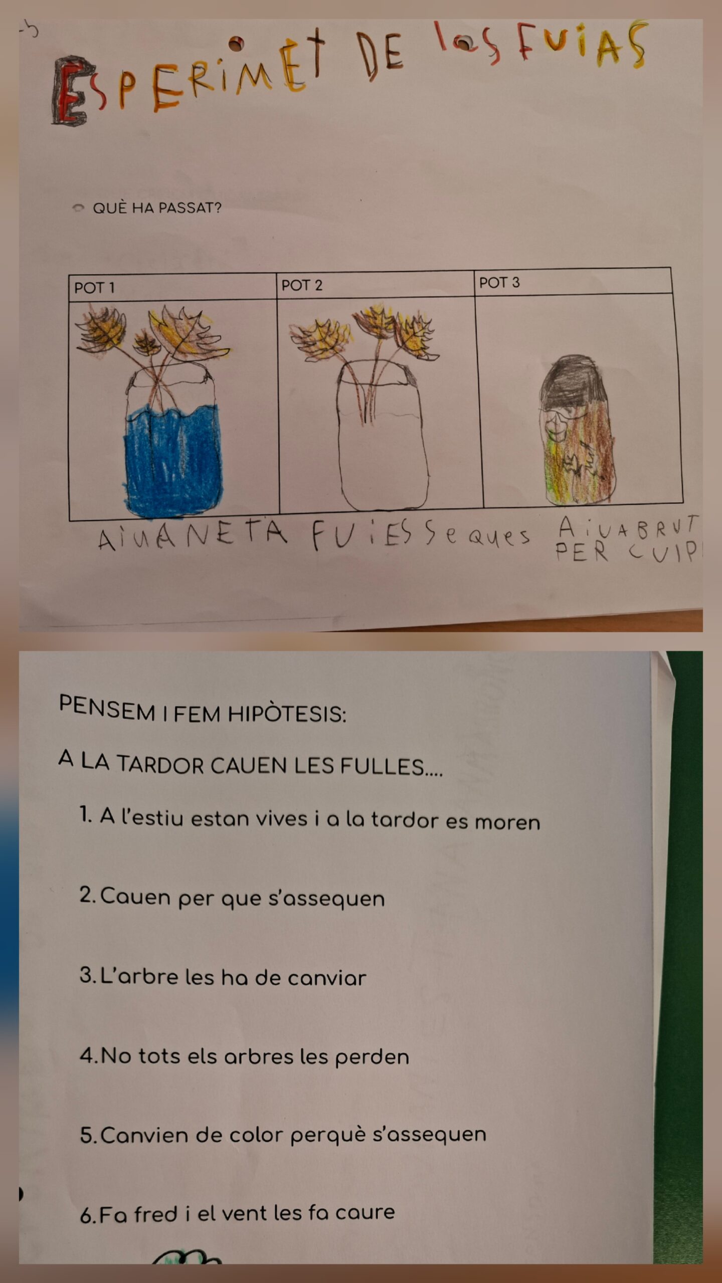 Abans de començar, vam fer hipotesis de què podria passar a cada fulla.
