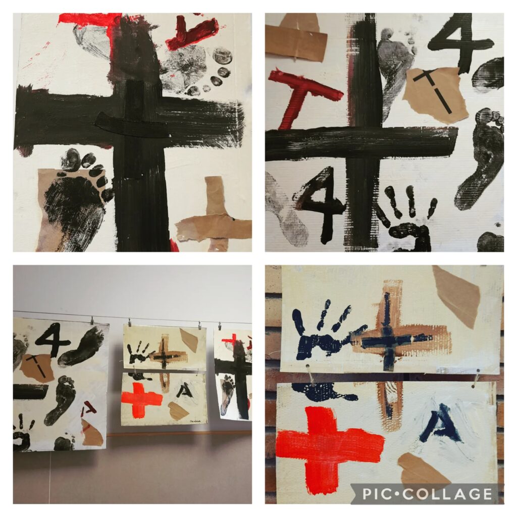 A la classe dels “artistes”, a la tornada de les vacances hem començat a treballar l’obra de l’Antoni Tàpies. Primer, vam fer memòria de la visita que vam fer a la Fundació Tàpies de Barcelona i de tot el que recordàvem sobre l’artista. Els símbols que utilitzava com la creu i les inicials del seu nom, el nombre quatre…els colors ocres, negre, vermell i blanc.