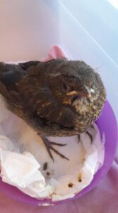 En aquest cas no ha estat possible, donat que el petit tord havia estat caçat per un gat ahir al vespre i a més aquella hora plovia.
