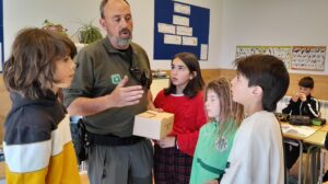 Aquest matí hem rebut la visita dels forestals a la classe de Cicle Superior. Han vingut perquè hem trucat al 112 per explicar que hem trobat un “poll” de Tord que no podia volar. El va trobar ahir al vespre l’Elisenda i l’ha dut a l’escola per explicar-nos que havíem de fer si trobàvem qualsevol animal salvatge ferit o que necessités ajuda d’alguna mena.